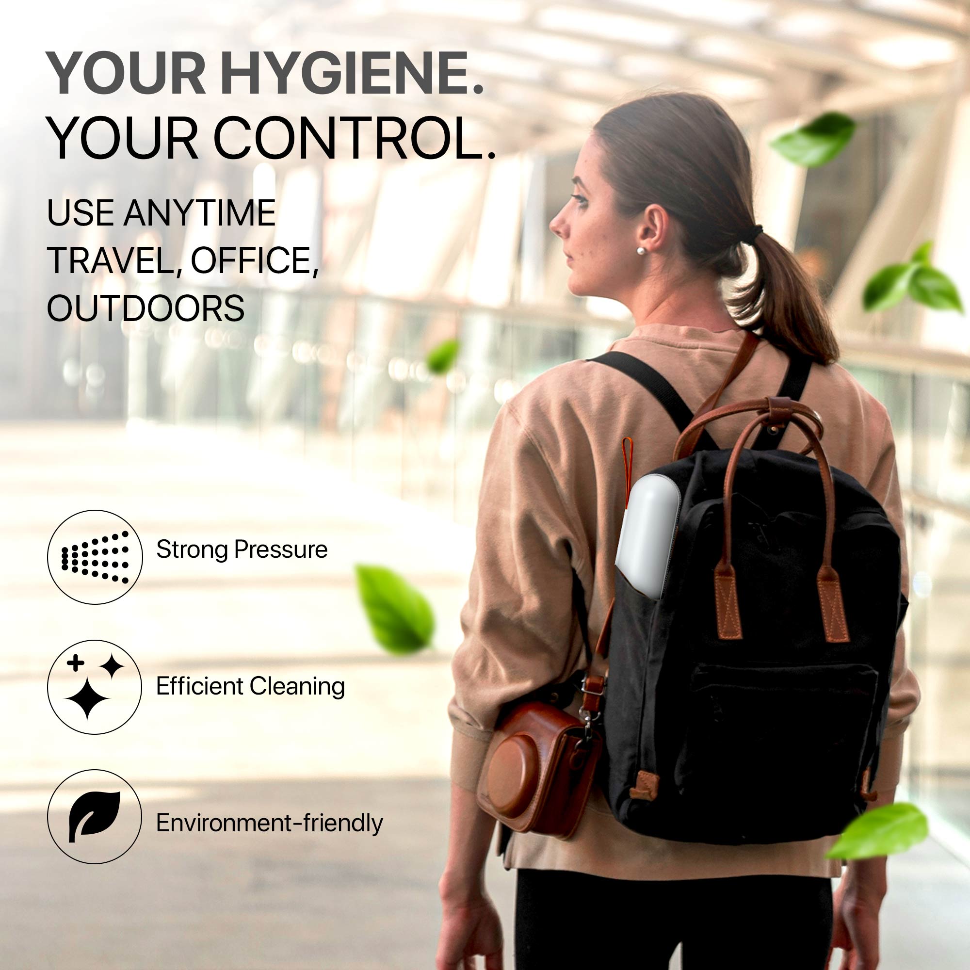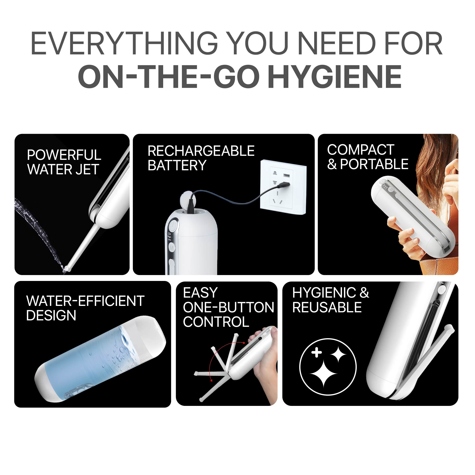 Stay fresh anywhere with a compact, rechargeable hygiene solution.